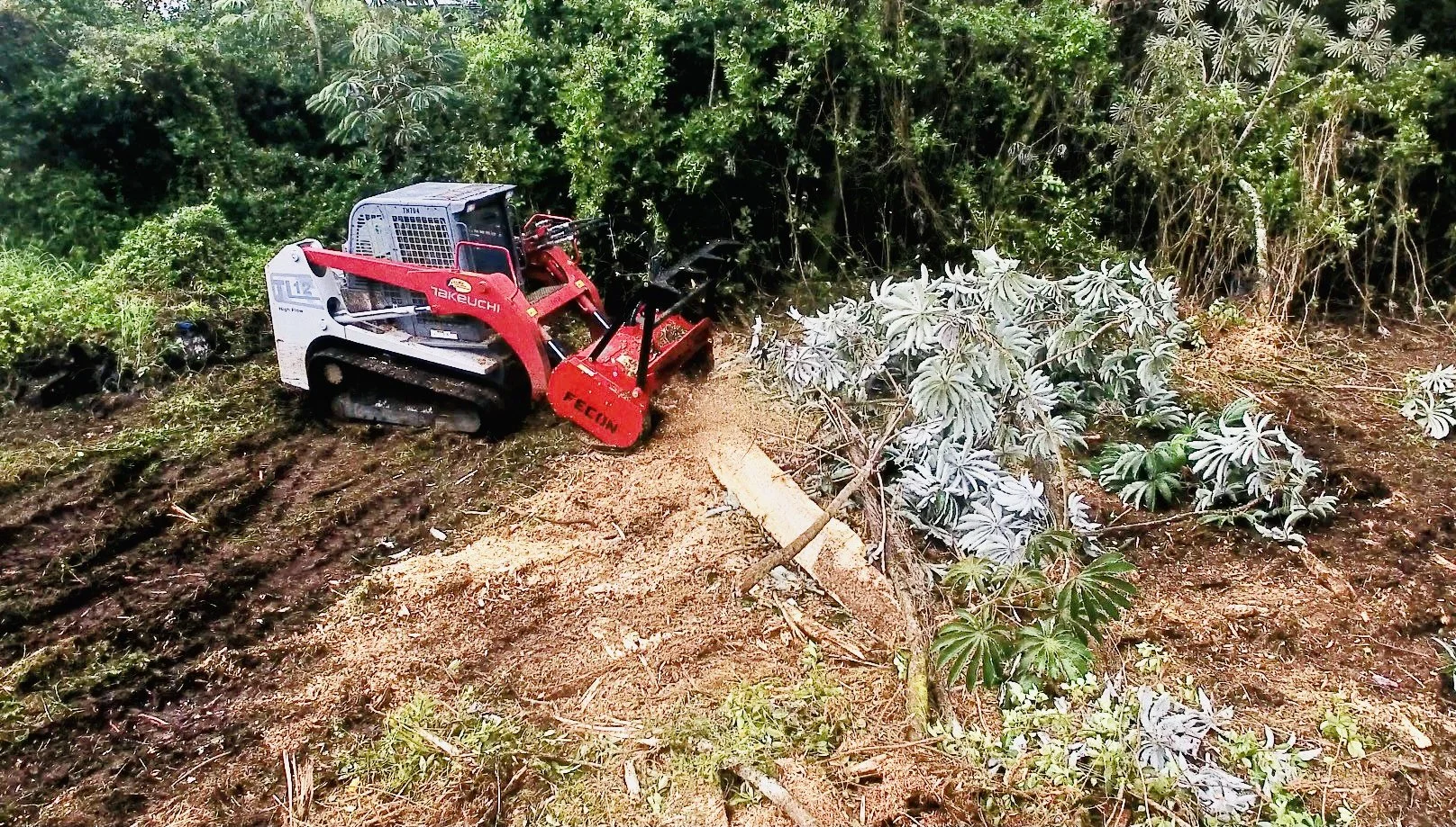 Unwanted vegetation can be ground with our Fecon Forestry Mulcher and repurposed as mulch for ground cover, gardening, or compost. Mulching is a sustainable alternative to leaving piles of green waste that may regrow and take up space.